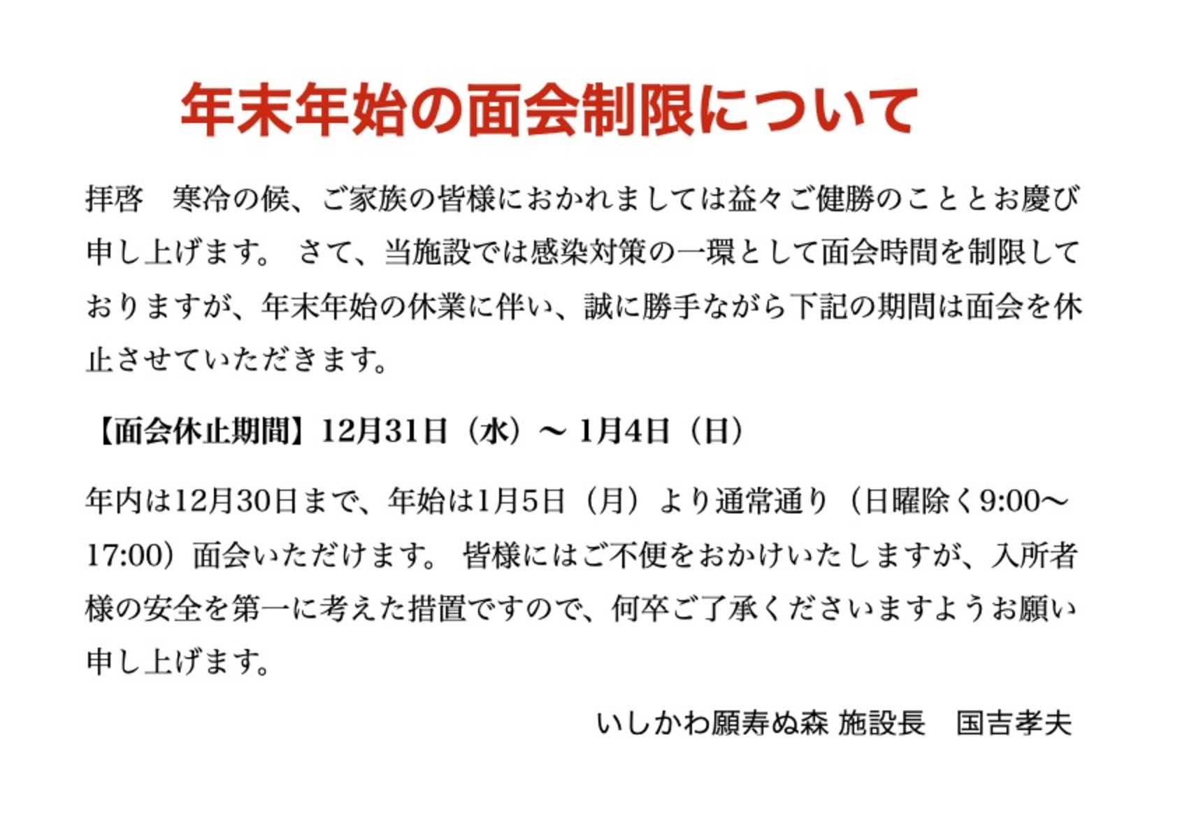 年末年始の面会制限について